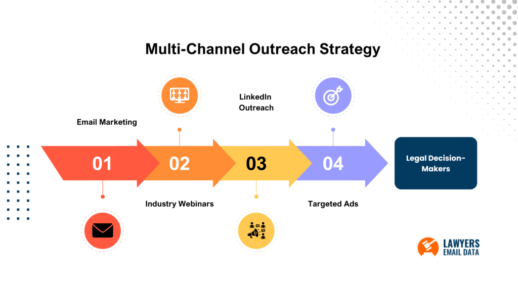 Law firm professionals are active across various platforms, so relying on a single communication channel limits your reach. A multi-channel outreach strategy helps you connect with attorneys where they are most active, improving visibility and response rates. By combining email with social, event-based, and digital channels, your outreach becomes more impactful and credible.